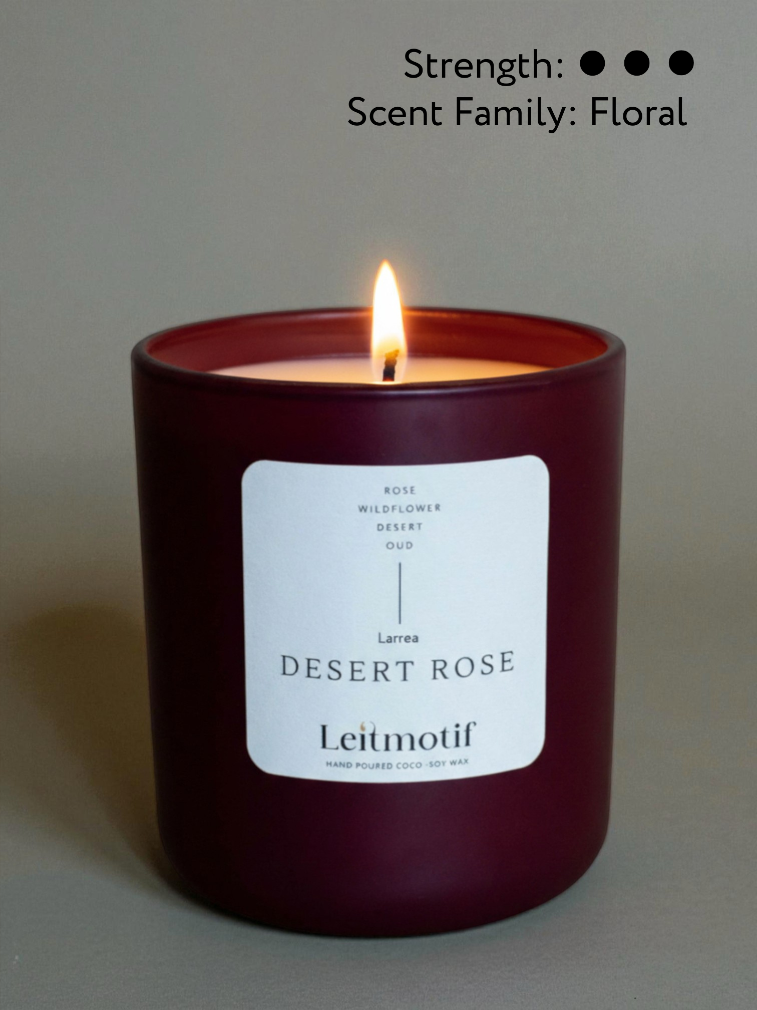 It opens with the dry undertone of creosote. Grounding the sweetness, wild rose and desert flowers bloom in the heat, faded and wild, not soft or powdery—but tough, thorned, and sun-kissed. The heart is rich with black rose and oud, heady and dark, pulled back just enough by rosewood and the green of vetiver. Finally, sensual amber melts through the base, warm and luminous.